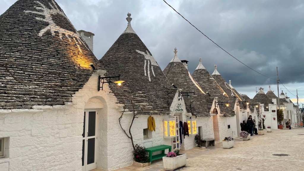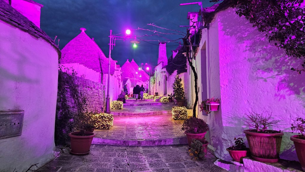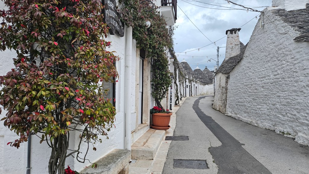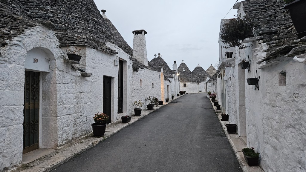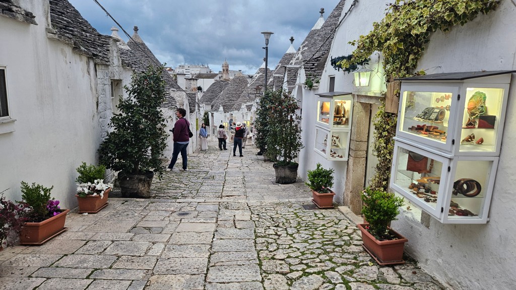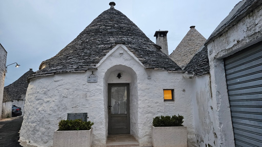 The drive from Matera to Alberobello – a UNESCO Heritage site with unique buildings called Trulli – was pleasant in 2-lane countryside roads without much traffic. As the town/village is in a ZTL zone, we parked in a public parking lot. The host of the hotel kindly met us there, helped with the parking meter and guided us to the hotel which is within a short walk. He gave an explanation about the area, which was basically 3 cute little zones –