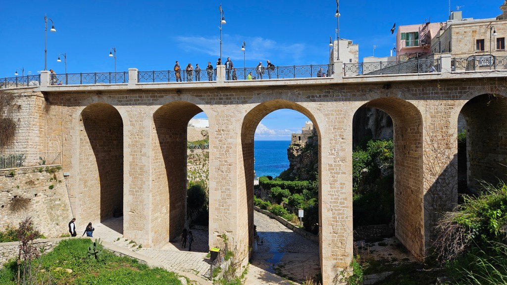 Polignano a Mare is a picturesque coastal town set on cliffs overlooking the Adriatic Sea. We visited Ponte dei Lapilli, a popular beach nestled between cliffs, where the blue water, sunlit blue skies, and cliffside buildings created a perfect setting for photos. Walking through the town, we found charming narrow streets, historic buildings, and scenic viewpoints at the cliff edges—each corner offering a new perspective of the sea.