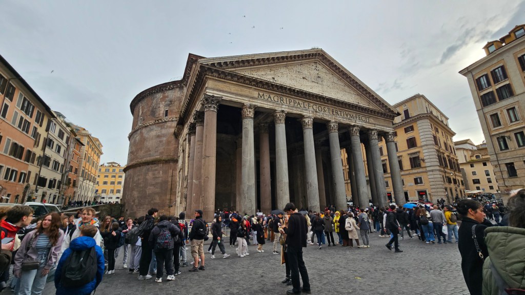 Next, we got to Pantheon, an ancient Pagan temple turned to Church. Pantheon’s rotunda has influenced many subsequent Domes of the Roman empire and The Vatican’s St Peter’s Basilica itself. The dome is built with concrete made of dense stones at the base and progressively light-weight porous volcanic rocks towards the canopy to reduce the weight to be held by the structure below – an engineering and architectural marvel for its time.