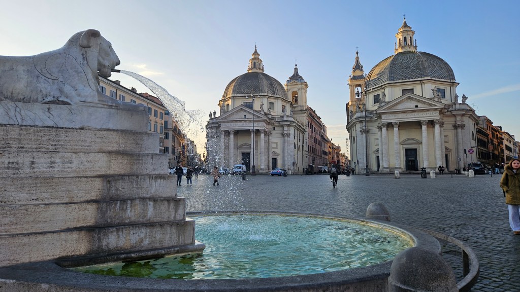 Another early start and the tour group had to assemble at Piazza del Popolo, home to “twin” churches of Santa Maria in Montesanto (left, built 1662–75) and Santa Maria dei Miracoli (right, built 1675–79). An Egyptian Obelisk stands tall in the center of the square. A witty and insightful guide, Barbara, led us to the bus stop on Viale Giorgio Washington from where we headed out.