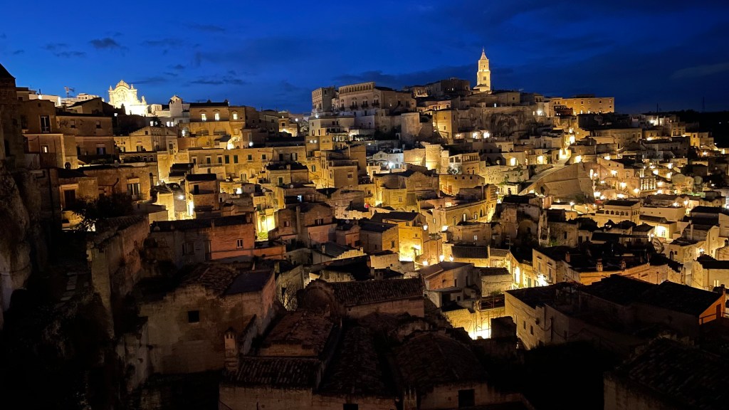 Dinner at Myricae was an experience we enjoyed. Chef Domenico passionately explained the menu, ingredients, how they are sourced locally and curated into a modern eye-pleasing plate. Items were unique with a hint of fusion – we had a risotto made with burnt rice and tomato and a pesto pasta made with soba noodles. By the time we finished the dinner, Matera was beaming with lights under the dark sky. The sultry beige colors of Matera buildings brightened with lights made the night quite charming and the stroll back to hotel relaxing.